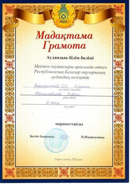 » » » Республикалық балалар оқуларының аудандық кезеңінің жеңімпаздары