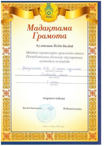 Республикалық балалар оқуларының аудандық кезеңінің жеңімпаздары » Қарауылтөбе орта мектебі