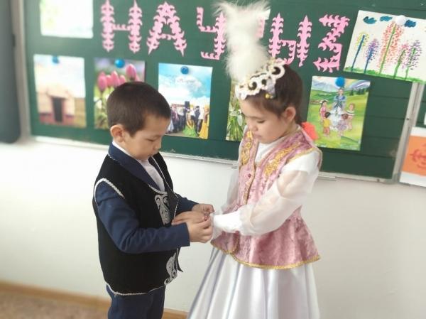 Тәрбие сағаты барысында оқушылар наурыз мерекесіне байланысты ән, би, тақпақтар, қазақтың салт-дәстүрлерлерін және ұлттық ойын түрлерін көрсетті. Жетекшісі:Э.Мамбетбаева.