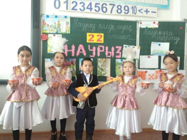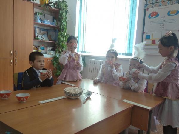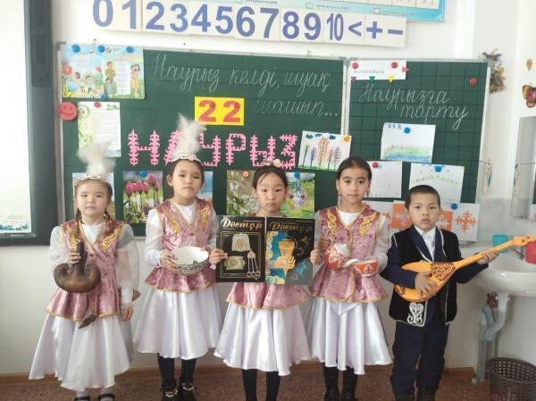 Қарауылтөбе орта мектебінде Ұлыстың Ұлы Күні-Наурыз мерекесіне арналған"Қош келдің-әз Наурыз!" онкүндік іс-шаралар аясында 15.03.2023 жылы 1 сынып оқушыларымен