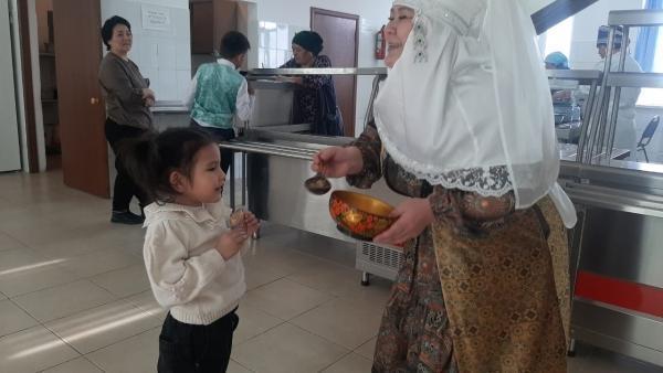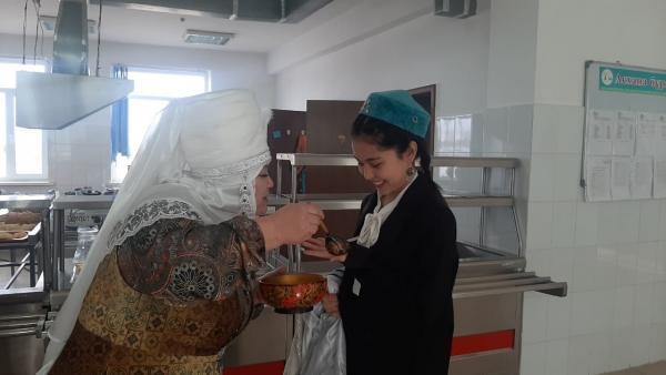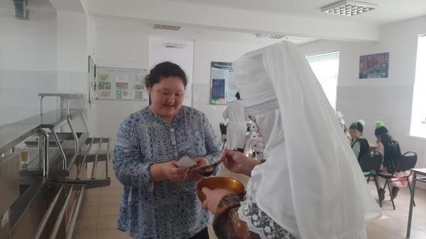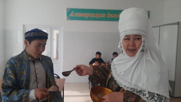 мерекенің нышаны болып табылатын наурыз көжені тілек ретінде мектеп ұжымы мен оқушыларына таратып,ақ батасын берді.