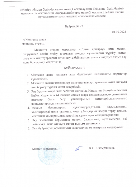 мектепте ақша жинамау туралы » Қарауылтөбе орта мектебі