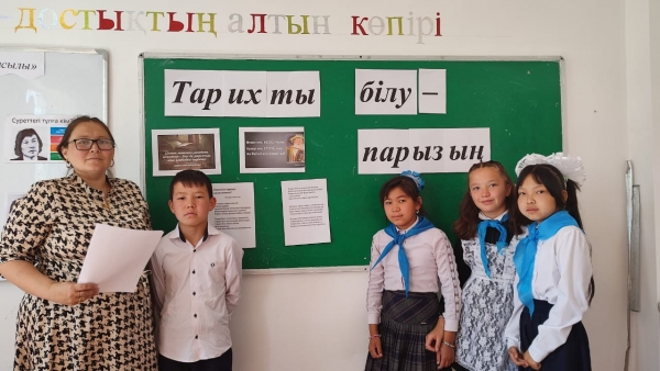 31.05.2023 жылы "Тарихты білу-парызың" тәрбие сағаты 5 сынып оқушыларымен өткізілді. Сынып сағатында негізінен патриотизм,отанды сүю,достық,татулық,ел тарихына саяси репрессия мен аштық құрбандарының есімдеріне құрмет таныту сынды ақпараттар айтылды. Және де бүгін оқу жылының аяқталуына байланысты жазғы демалыс кезінде бос уақыттарын тиімді де ұтымды өткізулеріне ,кітап оқып,қарауға болатын фильмдер тізімін ұсынды. Сондай-ақ қауіпсіздік шаралары, кәмелетке толмағандар арасындағы құқықбұзушылықтың алдын алу бойынша түсіндірме жұмыстары жүргізілді.
