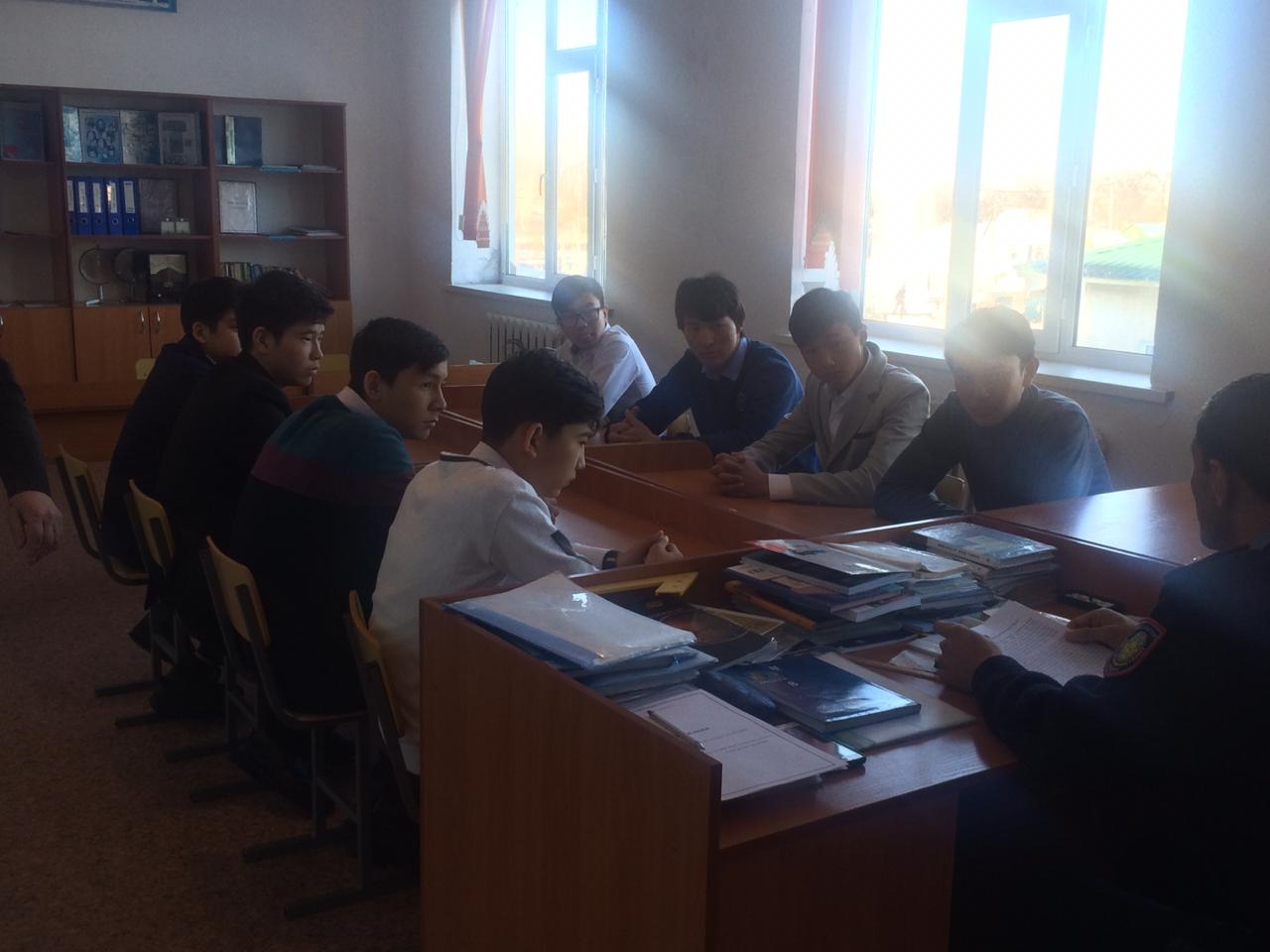 24 февраль 2020 0 1 2 3 4 5 ЖПҚ ППТ полиция аға лейтенанты Ж.Шаровпен 9-11 сынып ер оқушылармен кездесуі Теги: 123